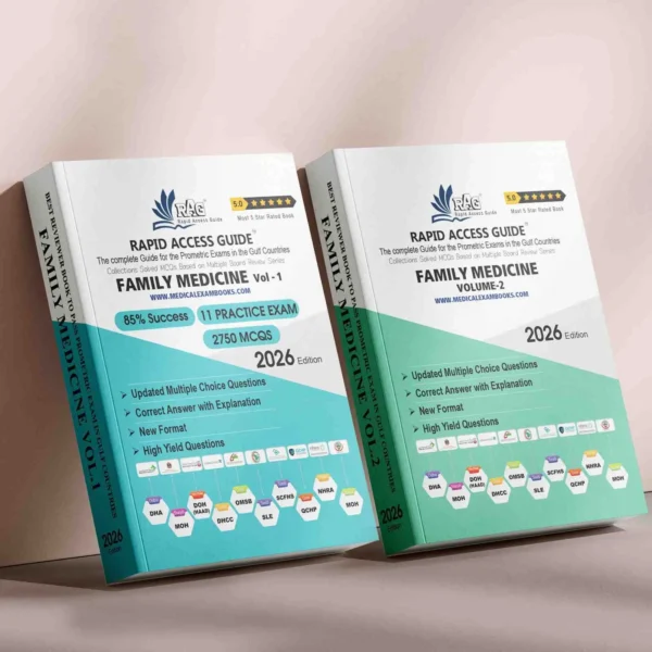 Family Medicine Prometric Exam MCQ Book 2026 for your upcoming exam preparation has been developed by our professional team; Rapid Access Guide is the best seller book for all Gulf Countries Exams since 2000. It has an array of all topics; thousands of updated questions with correct answers and explanations certainly will help you to pass the exam at the very first attempt.